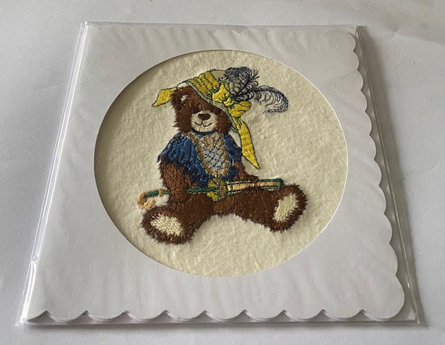 A embroidered brown bear on a card the size is 160mm x 160mm