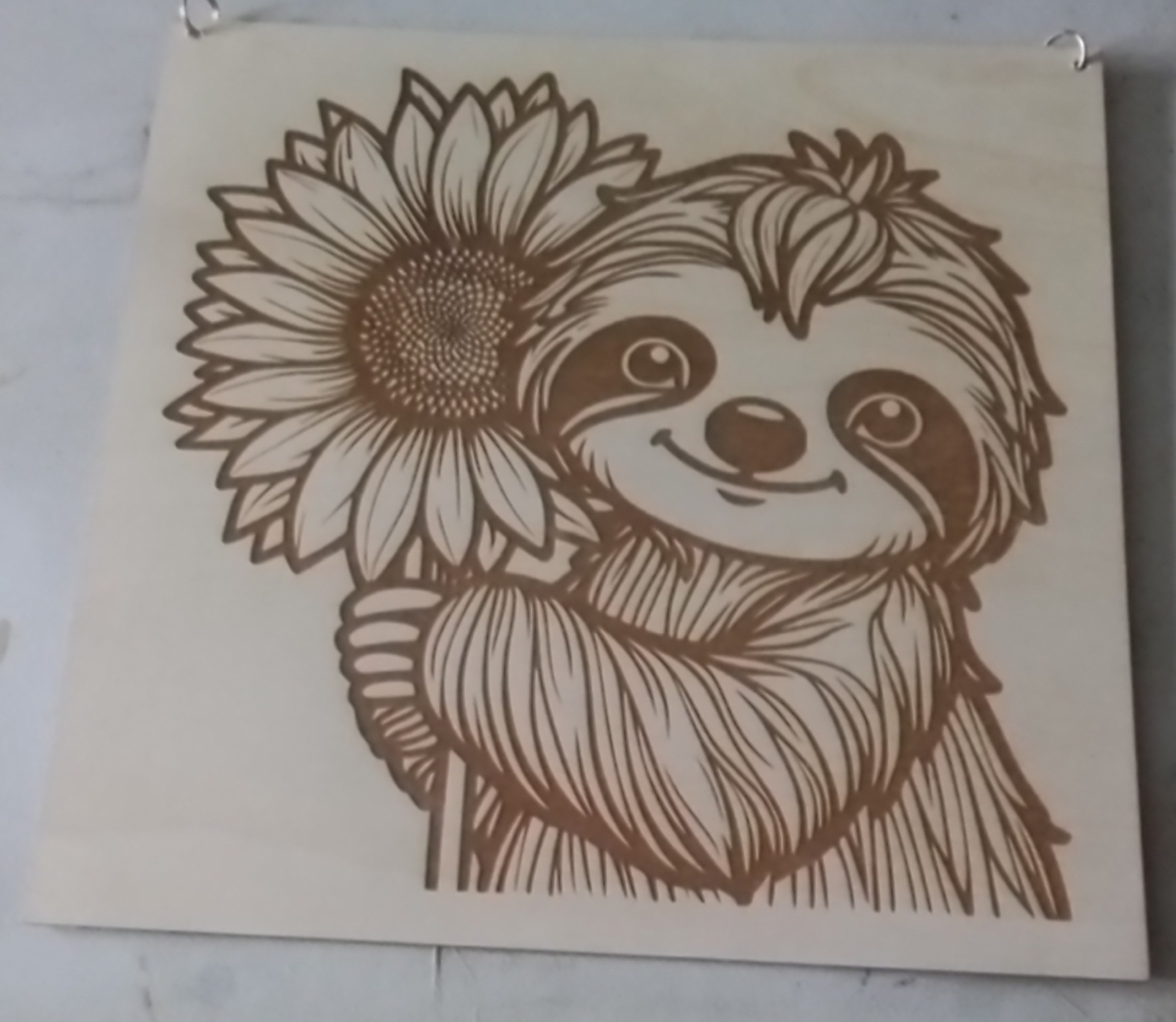 A large plaque of a slough with a flower the size is 300mm x 300mm