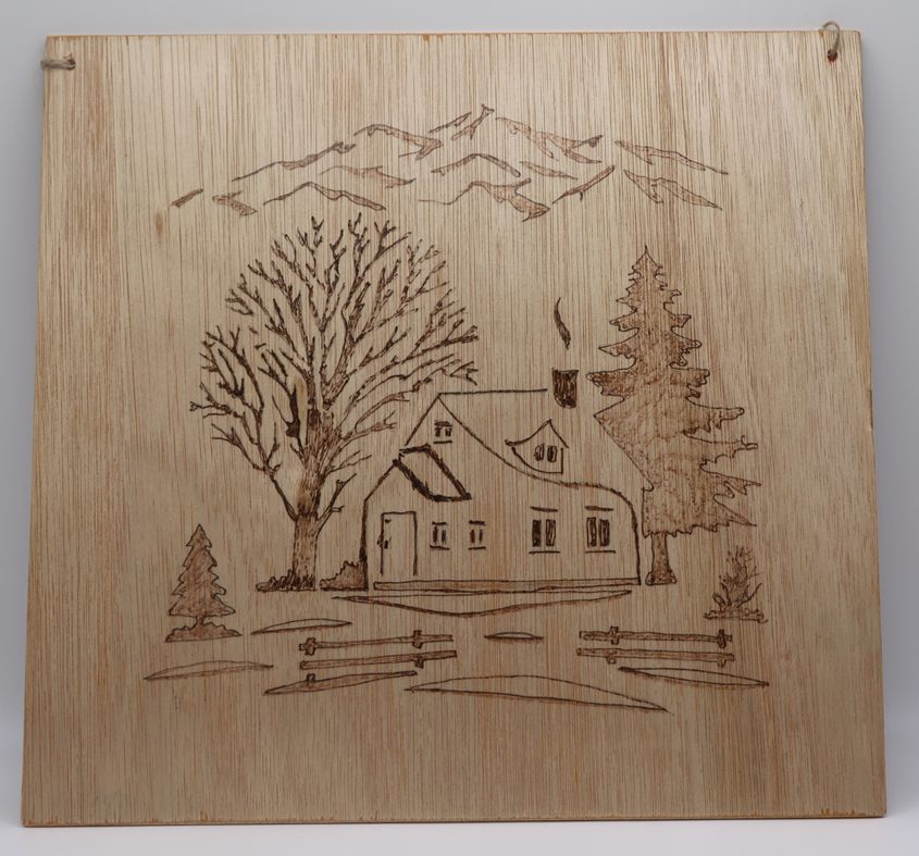 A large wall plaque of a house and tresses size is 300mm x 300mm