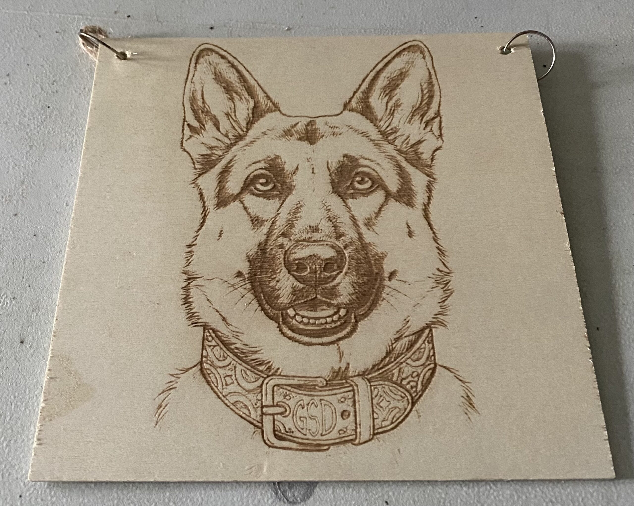 A lovely wood plaque with a dog on it