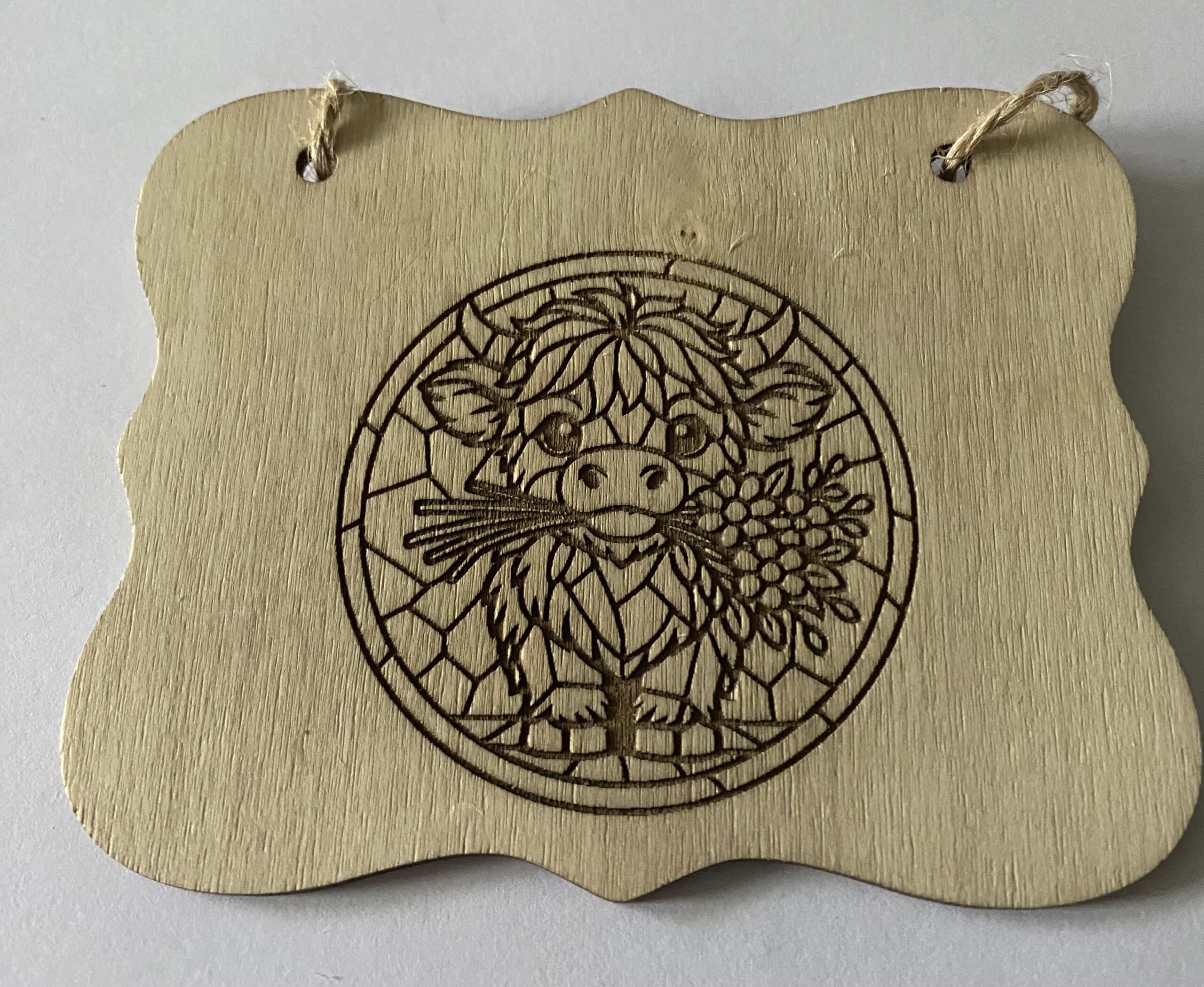 / A plaque of a highland cow
