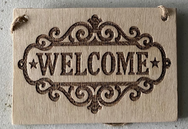 A small welcome plaque in wood the size is 95mm x 65mm